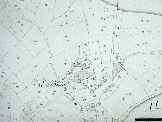 Plan cadastral de 1811, dévoilant la nature des cultures et, ici, l'importance des vergers.Immatriculation