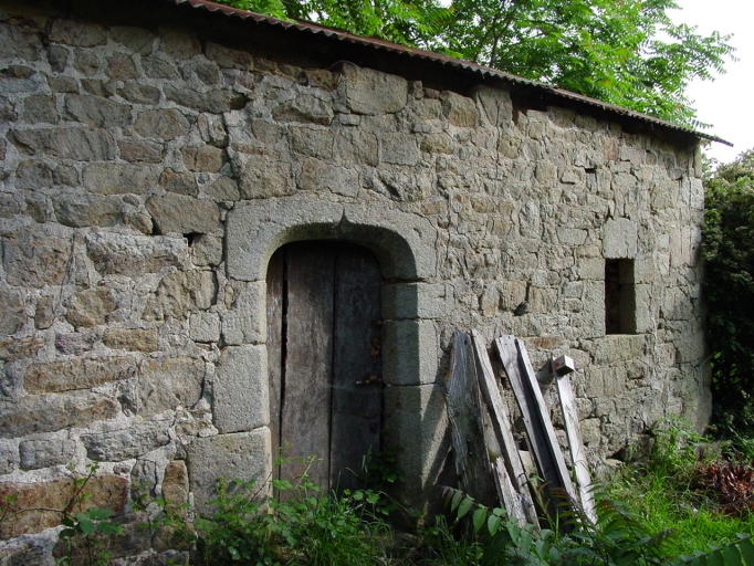 Dépendance et fournil isolé de la ferme repérée n°4 (B 278), couverte en appentis. Détail de la porte sud (fin 17e siècle).Immatriculation