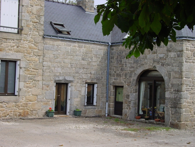 Angle sud-est de la façade. Détail porte ancienne et pierres de taille en provenance du bâtiment antérieur.Immatriculation