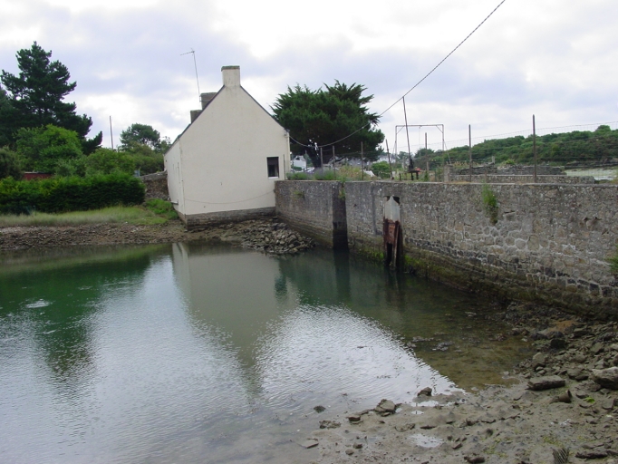 Moulin à marée du Bignac, la digue et ses vannes côté étang.Immatriculation