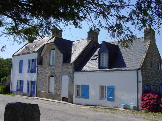 Alignement de 3 maisons mitoyennes. Les 2 premières à gauche sont repérées. Celle au centre est recomposée dans les années 1920, son enduit de façade a disparu récemment.Immatriculation