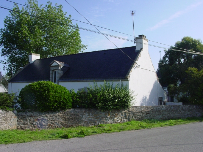 Maison n°7 (AH 264). A noter l'appentis postérieur et soue à porc en retour, l'ensemble dans un enclos délimité par un muret. Vers 1900.Immatriculation