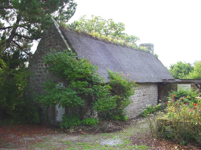 Ferme n°3, dépendance sud figurée sur le plan cadastral de 1845. La couverture de roseaux présente un faîtage planté d'iris. Le pignon nord est terminé par une boule.Immatriculation