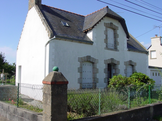 Rue de Poulbreton, n°1 : maison des années 1920, repérée (AB 108), à 2 pièces symétriques et lucarne couverte d'une demie croupe.Immatriculation