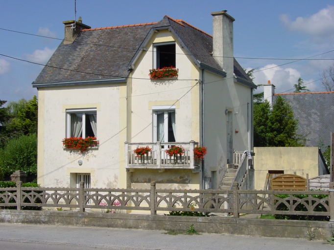 Route de Kergroix, n° 5 (AH 51) : maison des années 1930, repérée, de plan en L à RDC surélevé et escalier extérieur.Immatriculation