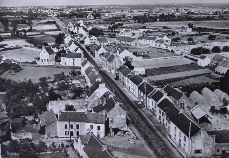 Vue aérienne vers le nord-ouest, au dessus du bourg, vers 1958-1960.Immatriculation