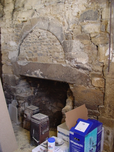 Le logis, petite salle est du RDC : détail de la cheminée engagée du 15e siècle.Immatriculation