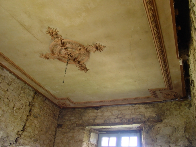 Le logis, petite salle est du RDC : détail du plafond du 18e siècle.Immatriculation