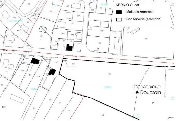 Plan de situation des édifices repérés à Kernio OuestImmatriculation