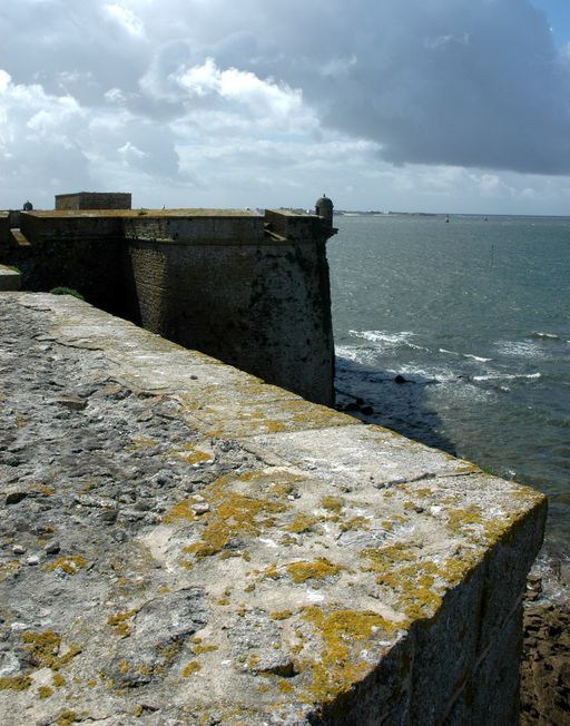 Vue de la citadelle de Port-Louis : embrasures plongeantes et échauguette du bastion à orillon des ChambresImmatriculation