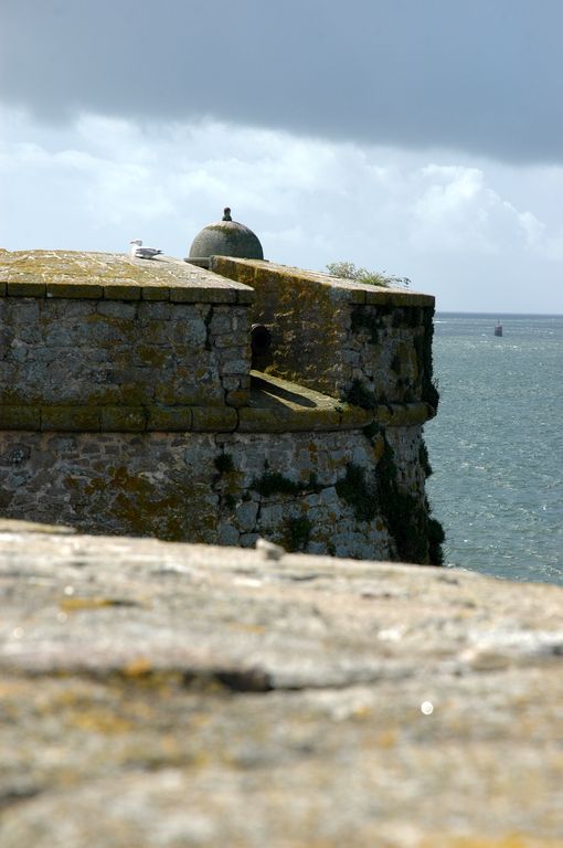 Vue de la citadelle de Port-Louis : embrasure plongeante et échauguette du bastion des ChambresImmatriculation
