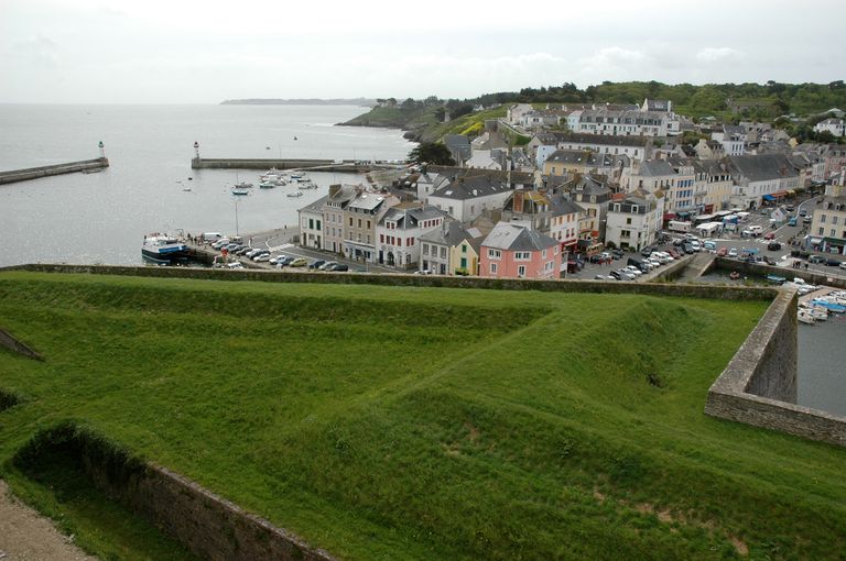 Vue de la citadelle de Belle-île : le redan du Havre. En arrière-plan : le bourg de Le PalaisImmatriculation
