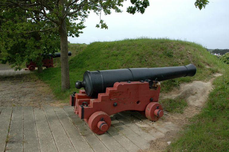 Vue de la citadelle de Belle-île : reconstitution d'une pièce d'artillerie sur affût de marineImmatriculation