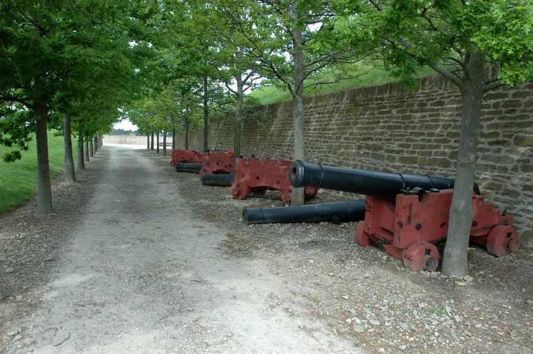 Vue de la citadelle de Belle-île : exemple de reconstitution de plusieurs pièces d'artillerie sur affût de marineImmatriculation