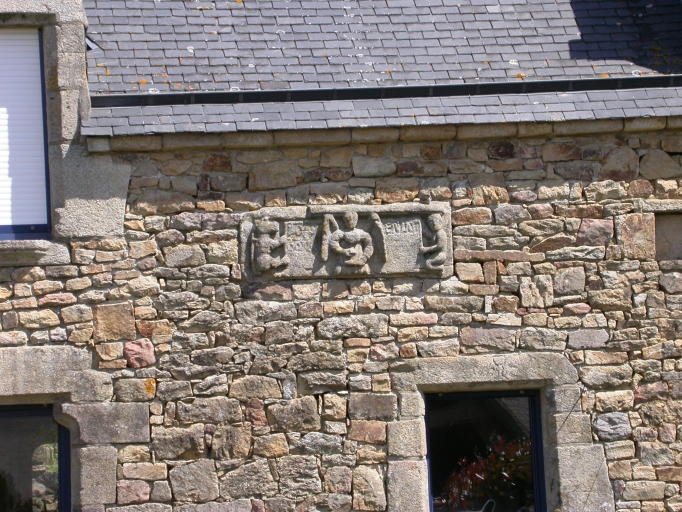 Pierre sculptée remployée dans le mur d'une maison non repérée remployant des baies anciennesImmatriculation