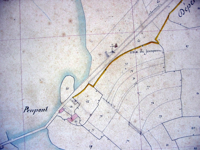 Stèle christianisée dit stèle de Prostlon et croix de chemin, Pen Pont (Locoal-Mendon),