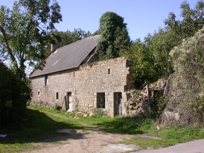 Pen Inez, ferme repérée : logis-étable à deux portes (logis en partie ruiné) avec puits intégré dans le mur du logis, limite 17e siècle 18e siècle, vue générale sud-est. XA 231Immatriculation