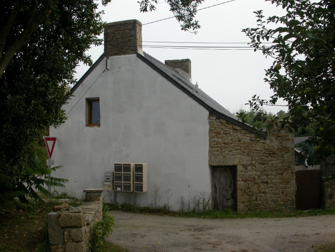 Keroulin, maison repérée : logis à pièce unique de bord de route avec appentis postérieur et cheminée, limite 19e siècle 20e siècle, vue générale. ZLImmatriculation