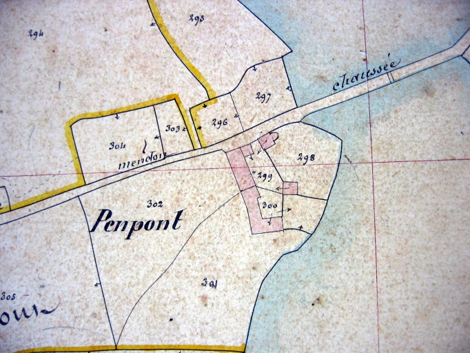 Pen Pont en Locoal, chaussée sur l'étang de Saint-Jean. Extrait du cadastre ancien de 1845 (A.D. 56, série 3P)Immatriculation
