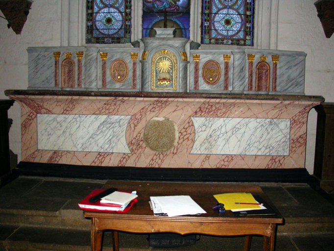 Autel, tabernacle à ailes et anges adorateurs,