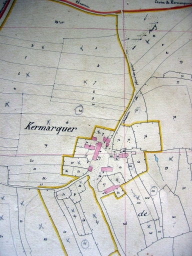 Village de Kermarquer. Plan cadastral de 1845, section E1 (A.M. Ploemel)Immatriculation
