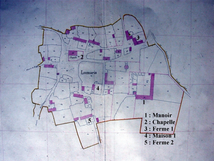 Localisation des éléments étudiés ou repérés. Plan cadastral de 1845, section D1 (A.M. Ploemel)Immatriculation