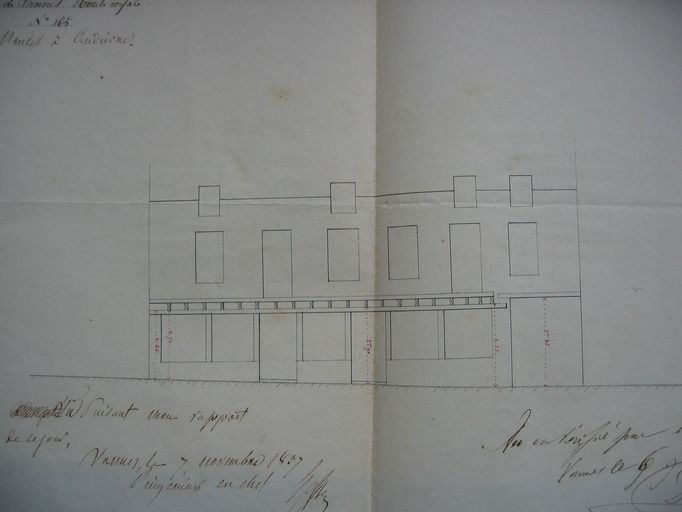 Plan dressé pour le projet de balcon de la maison Corvec, 1837. AD Morbihan S 245 alignements 1820-1880.Immatriculation