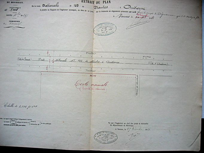 Demande d'alignement pour construire le mur de clôture de l'Ecole, par le sieur Hardy, 21 décembre 1881. AD Morbihan S 246.Immatriculation