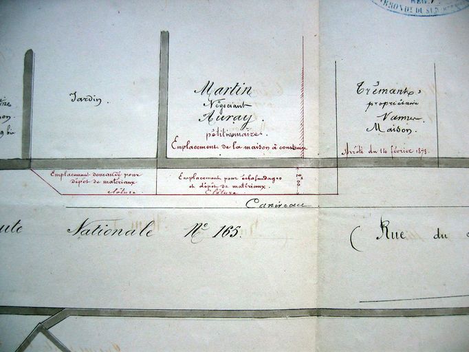 19 novembre 1878. Demande d'alignement des frères Normand, entrepreneurs pour construire une maison pour Martin négociant à Auray : détail. AD Morbihan S 245.Immatriculation