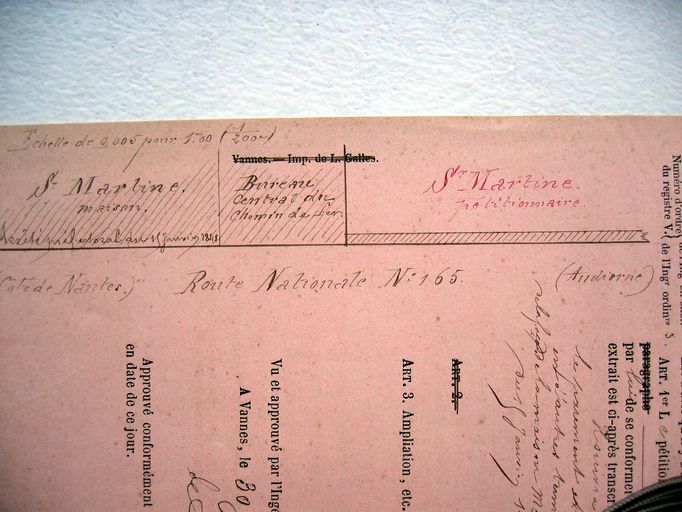 23 janvier 1878. Demande d'alignement de Martine pour Mr Trémant, carrossier rue Billault pour faire construire une maison rue du Mené. Plan d'alignement. AD Morbihan S 245.Immatriculation