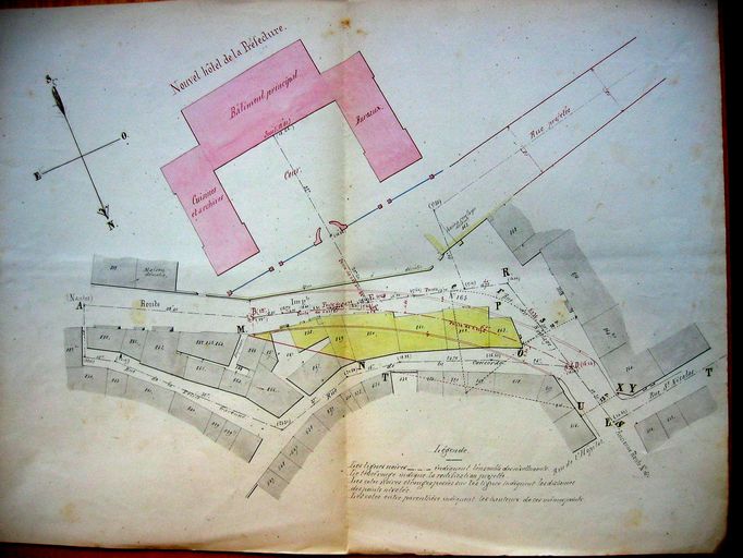 Avant-projet de rectification de la RN 165 aux abords du nouvel hôtel de préfecture. Plan, 19 décembre 1864. AD Morbihan S 245.Immatriculation