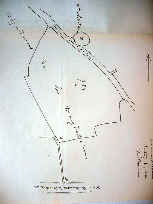 Demande de Louis Rosenzweig (propriétaire d´une prairie I 783) de déplacer une barrière de l´entrée de la prairie à l´entrée du petit chemin de servitude desservant ses propriétés, 26 mai 1875. AD Morbihan S 245.Immatriculation