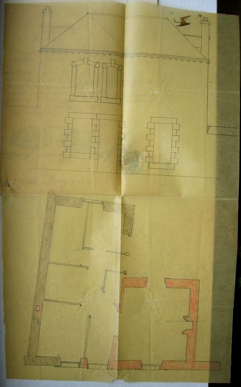 Plan et élévation de l'agrandissement de la dépendance de Maître Buguel faite par Normand, 7 juin 1898. AD Morbihan S 246.Immatriculation