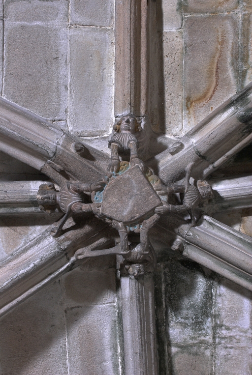 Déambulatoire du choeur, clef de voûte, écu muet et tenantsImmatriculation