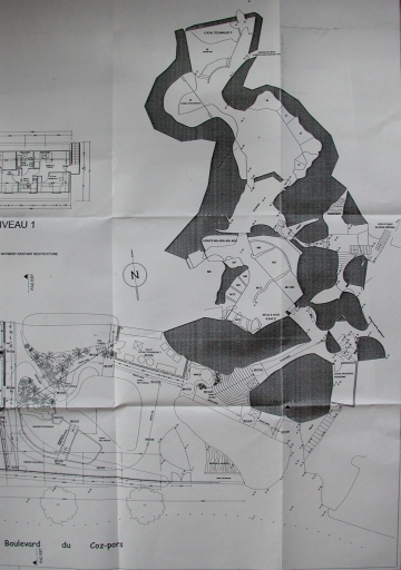 Vue en détails des aménagements du bâtiment existant, restructuré, 2004 : rez-de-chaussée et niveau 1 (collection particulière)Immatriculation