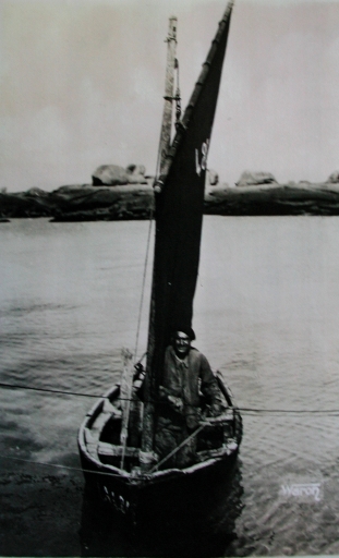 Zantig à bord de son misainier : remarquer le va et vient, actionné avec un treuil (carte postale, collection particulière)Immatriculation