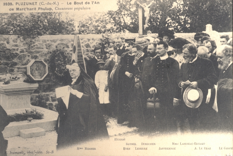 Charles Le Goffic en cie d'écrivains célèbres bretons et de la conteuse trégorroise Marc'halip Fulup, début 20ème siècle (collection particulière)Immatriculation