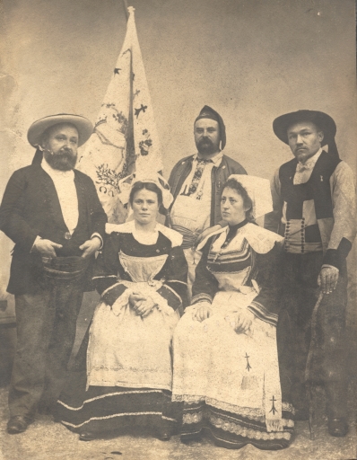 Charles Le Goffic en cie de trégorrois et de trégorroises en costumes bretons, début 20ème siècle (collection particulière)Immatriculation