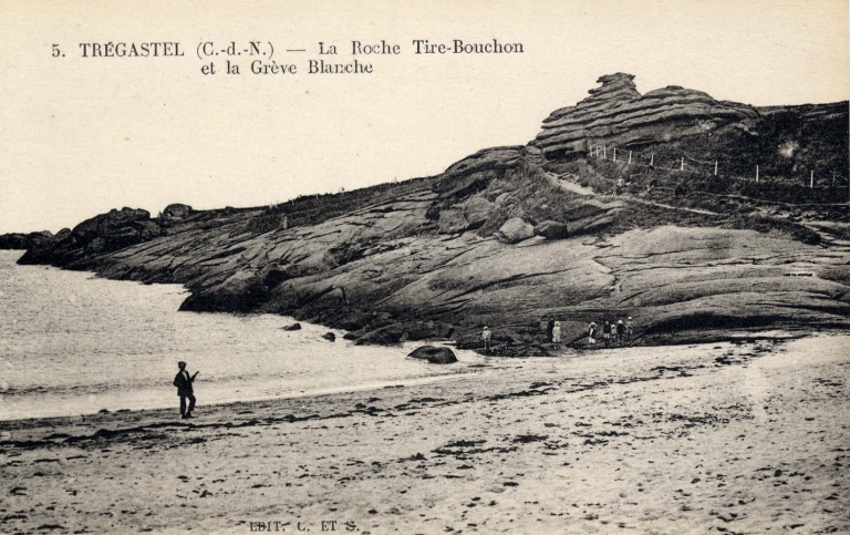 La Roche dit Tire Bouchon, chaos granitique et le sentier littoral de la Grève Blanche, début 20ème siècle (collection particulière)Immatriculation