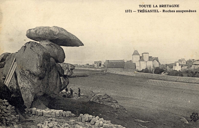 Chaos granitiques : rochers suspendus, remarquer le site d'une carrière avec les pavés (carte postale, 1er quart 20ème siècle, collection particulière)Immatriculation