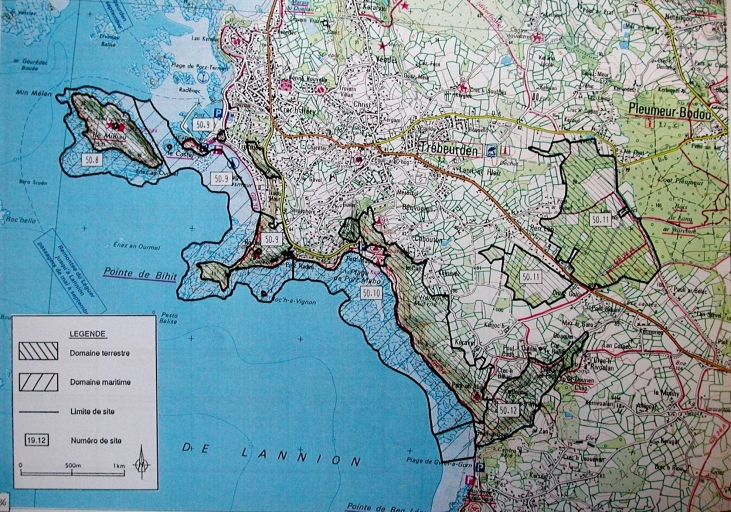 Carte des espaces littoraux remarquables : Extrait de la carte des espaces littoraux remarquables de Trébeurden : de l'Île Milliau à Goas Lagorn (DIREN Bretagne, DDE 22, 1998)Immatriculation