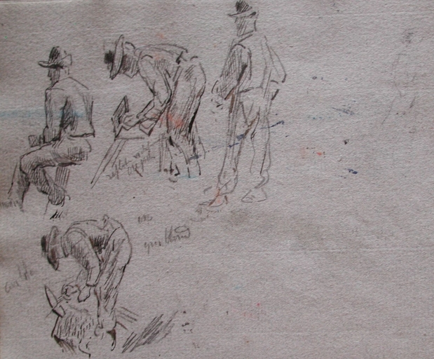 Dessin de L.M. Faudacq, fin 19ème siècle : posture d'un carrier utilisant un têtu (L.M. Faudacq, collection particulière)Immatriculation