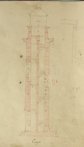Dessin du fanal de Binic, 1852 : coupe verticale, détails (AD 22)Immatriculation