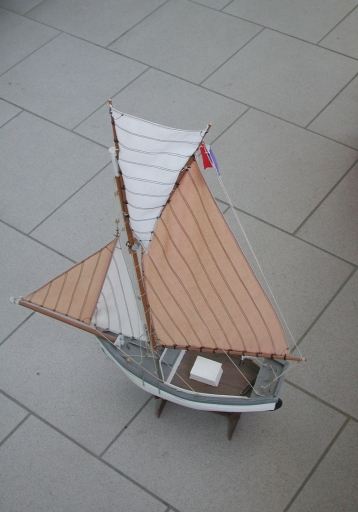 Vue de la maquette du Rigel : remarquer le plan de voilureImmatriculation