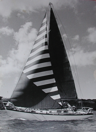 Le navire Tysora III au près devant Belle-Île, sous génois, vers 1980 (collection particulière)Immatriculation
