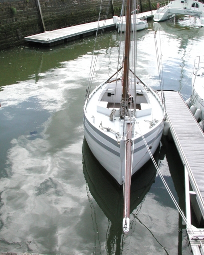 Vue de la forme générale du Rigel : remarquer la belle tonture de la coqueImmatriculation