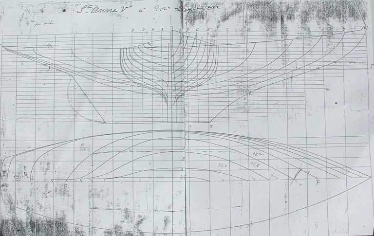 Plan de formes du navire Ste Anne V, aujourd'hui rebaptisé Armen IV (collection particulière)Immatriculation