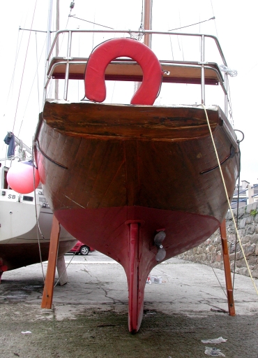 Vue des formes de l'arrière de Armen IV : remarquer la voûte et les fonds plats de la coqueImmatriculation