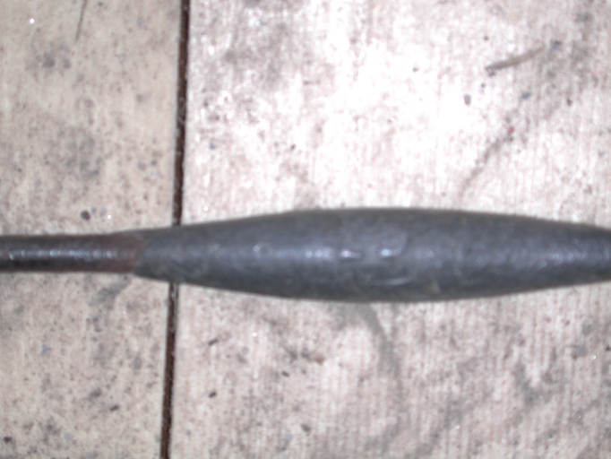 Vue de la forme du poisson en plomb, avec les initiales gravéesImmatriculation