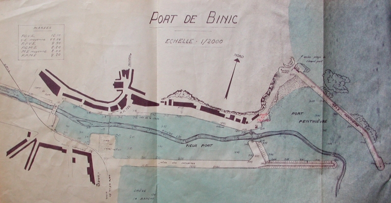 Plan du port de Binic en 1876 : emplacement du magasin des Ponts et chaussées en projet (AD 22)Immatriculation